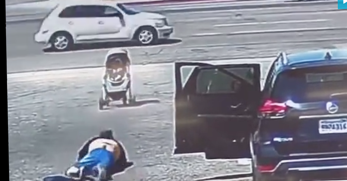 En äldre kvinna i Kalifornien ställde ifrån sig barnvagnen med sonsonen bredvid bilen utanför en biltvätt, och skulle just till att lasta in ekipaget i baksätet när en kastvind får vagnen att rulla i väg. Hon ser den på väg ut i rusningstrafiken, ramlar omkull, reser sig, ramlar omkull igen. Barnvagnen fortsätter ut mot bilarna. Med någon meter kvar till körbanan kommer räddningen.